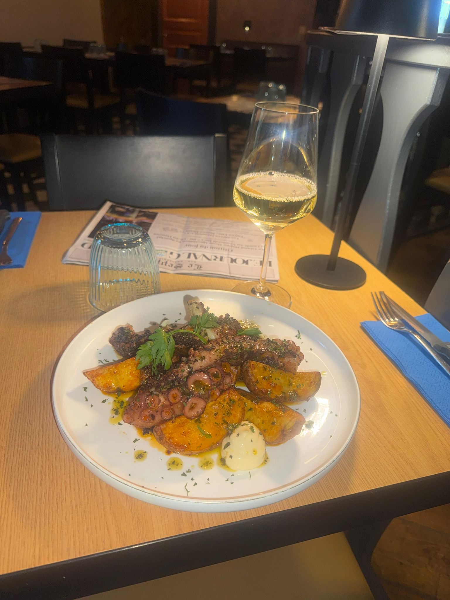 Le Poulpe Avec Les Pommes De Terre Au Four Au Paprika Fumé, Et La Sauce Aïoli.